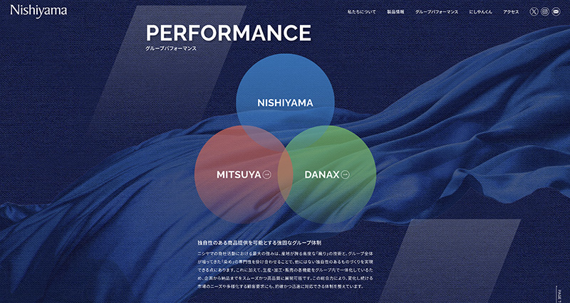 当社では、コーポレートサイトのリニューアルデザインにてご依頼をいただきました。よく見る標準的なコーポレートサイトではなく、繊維を扱う会社がひと目で解るようにというご要望をいただき、生地の素材感を存分に活かしたデザインを提案・制作を行わせていただきました。